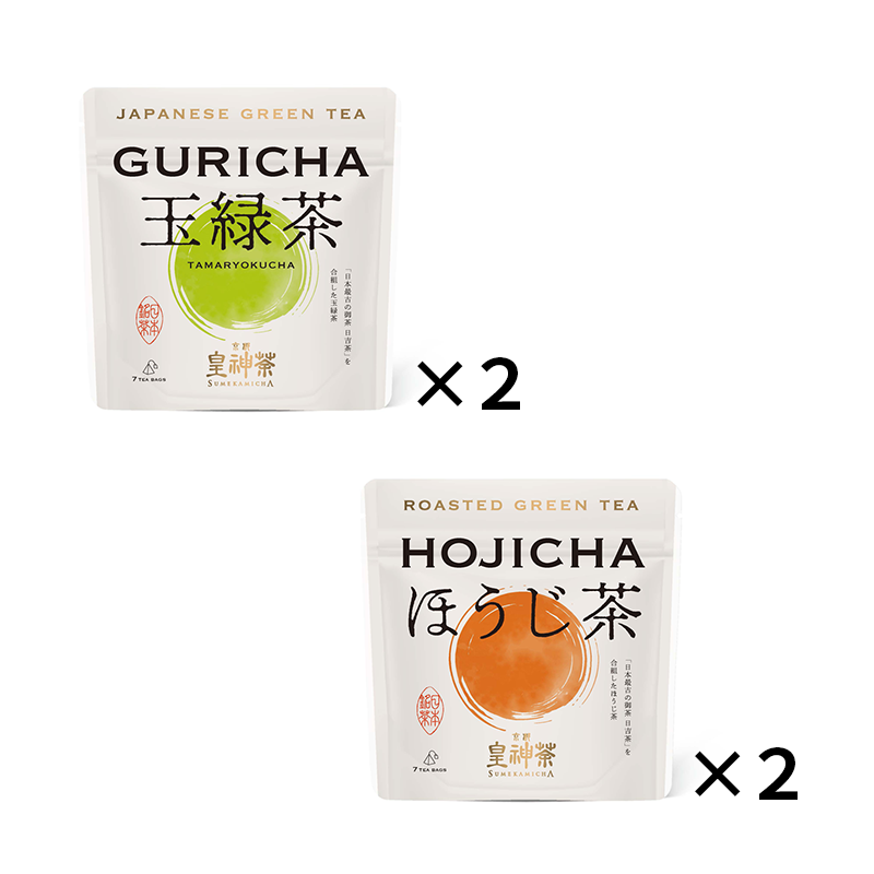 Contents: 2 bags of Tamaryokucha, 2 bags of Hojicha